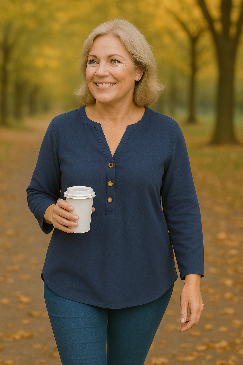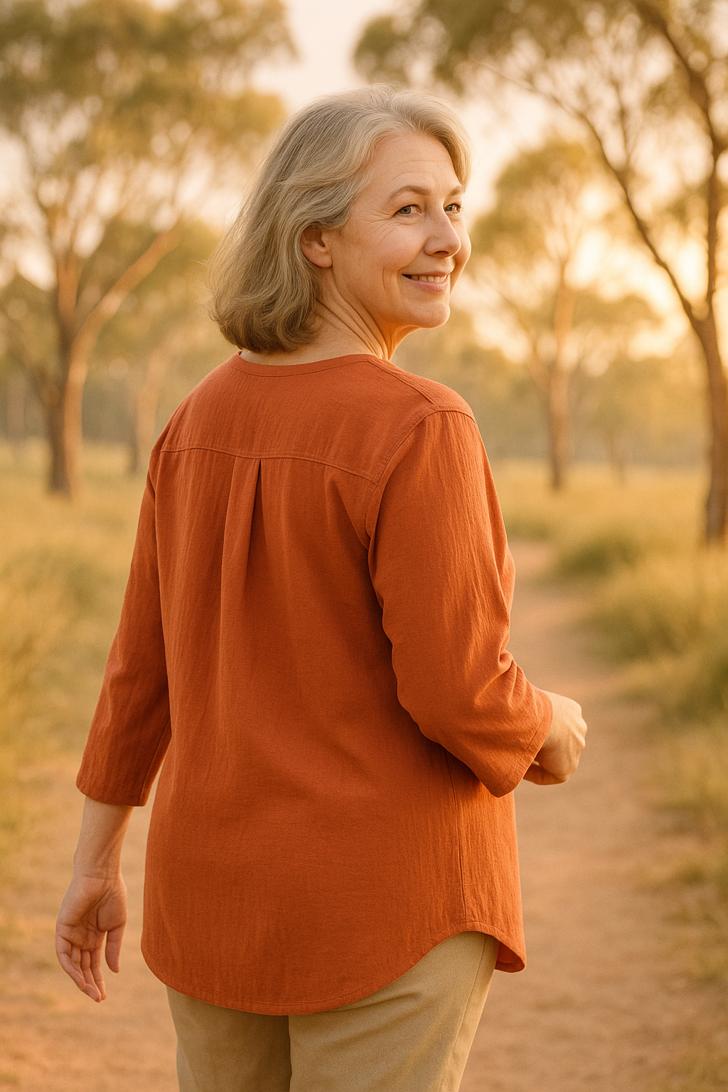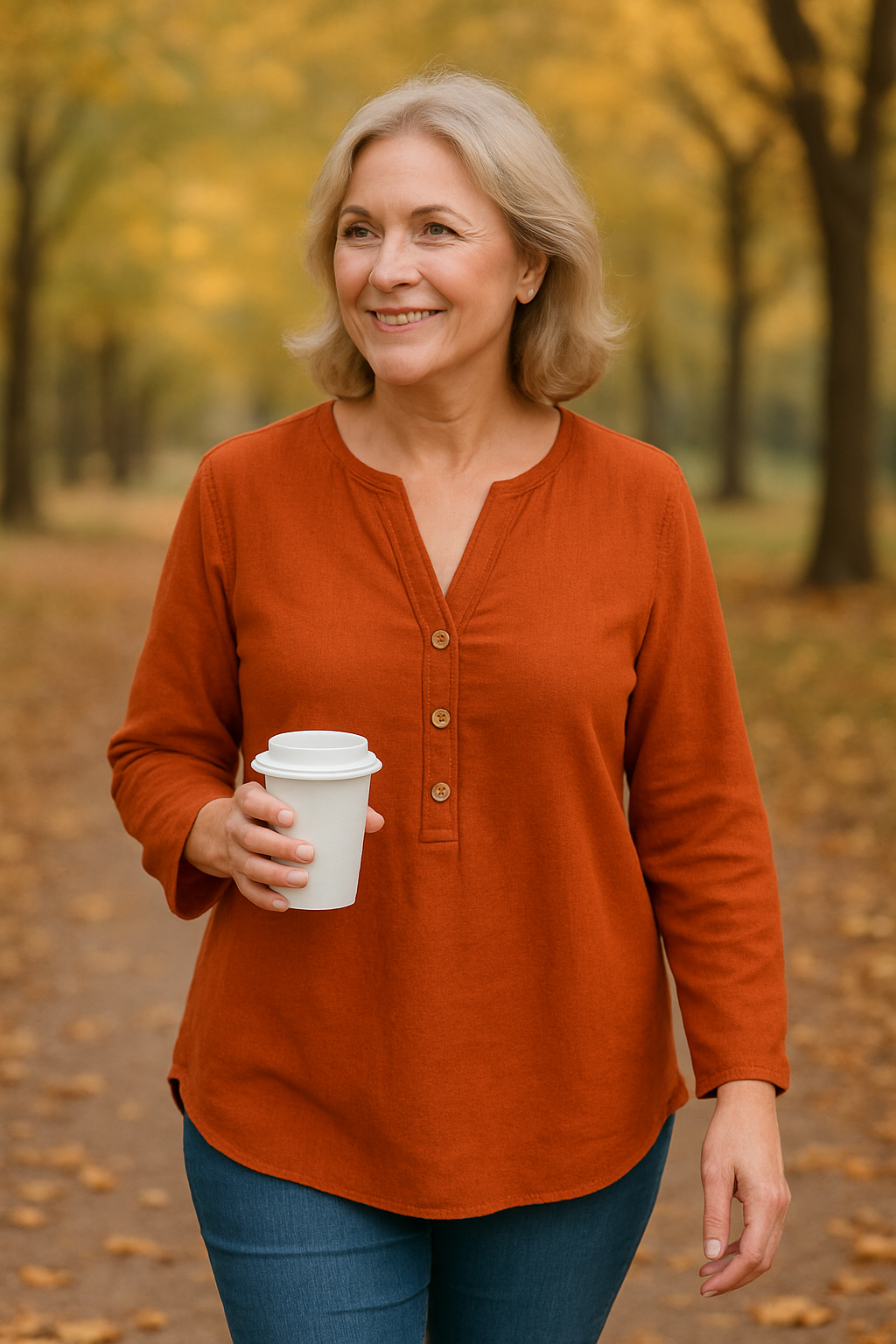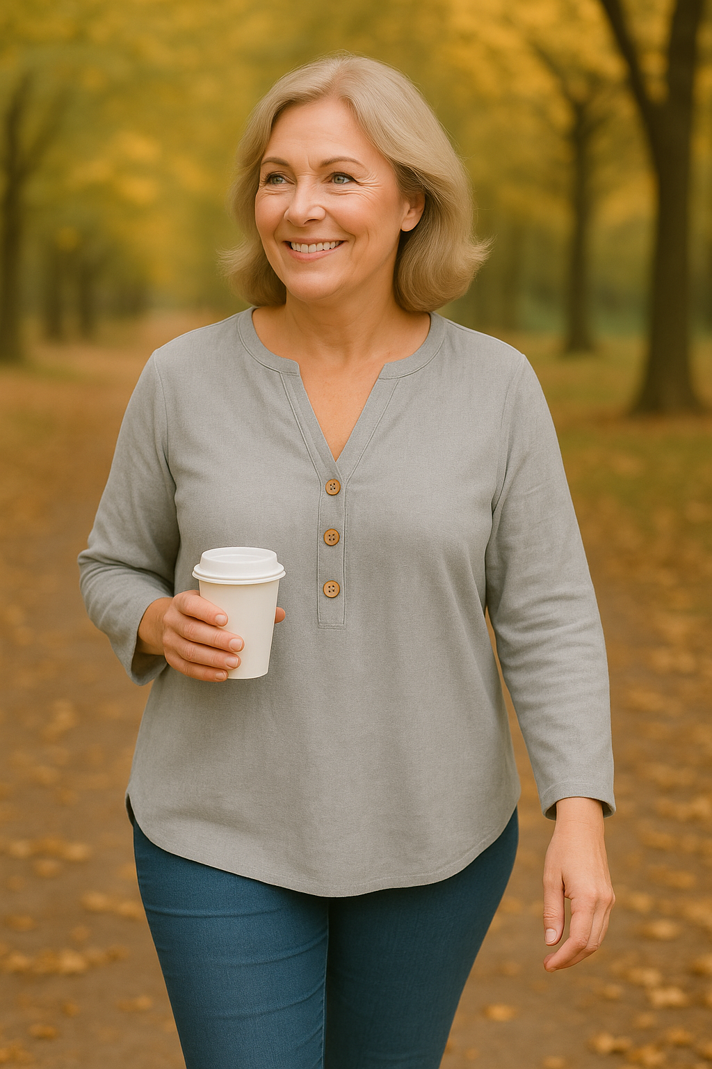 ⭐⭐⭐⭐⭐ “Finally, a blouse that makes me feel like me again. The Raina is soft, breathable, and actually flows over my tummy instead of clinging. I wore it to brunch and felt confident the whole time — it’s elegant, but effortless.” – Helen M. (58, Victoria, BC)