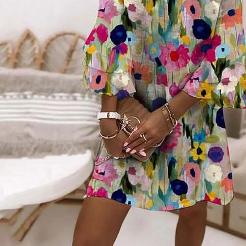 Rosalie | Romantic Floral Print V-Neck Mini Dress