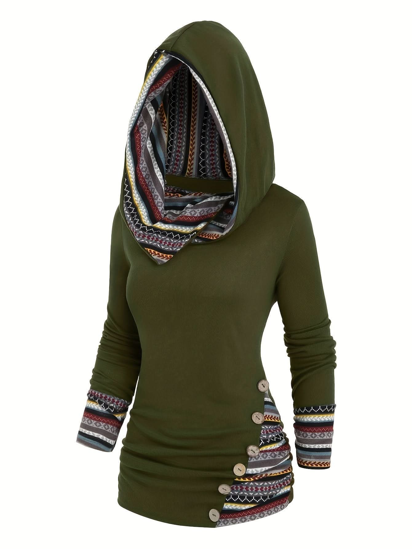 - Style: Longline sweatshirt with wooden buttons and contrast trim